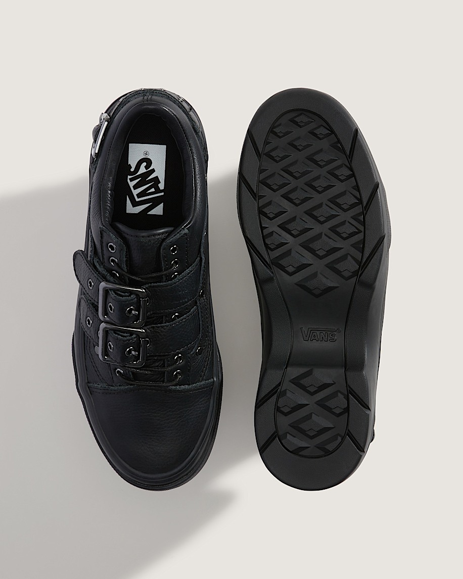 Reimagined low top shoeA buttery soft, full-grain leather upper with tumbled finishDual buckle straps with integrated eyelets across the tongueMetal hardware with grommet detailingAnkle strap with rear buckle wraps around the heeCustom heeled cupsole for a subtly feminine silhouetteCo-branded PopCush™ footbeds offer impact protectionIconic Sidestripe doubles as a strap anchor