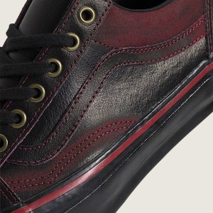 Skate-inspired, low-top shoeRub-away leather subtly changes color as the top black layer is worn off to reveal the red underneathLace-up closure with brass metal eyeletsSoft padded collar for enhanced comfortHigher sidewall with gloss finishFoxing tape inspired by original 90's Osnaburg reinforced outsolesUpgraded footbed and refined construction combine for a more seamless fitCo-branded Sola Foam ADC (All-Day Comfort) insole for soft and durable cushioning, 30% bio-based materialSignature waffle outsole pattern for reliable grip since '66Vulcanized build for the original look and feelIconic leather Sidestripe™ insignia