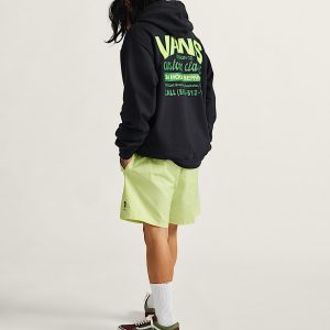 Elastic waist with faux fly and drawcordFront side seam hand pocketsKey loop at rear waist to keep your keys secureVans woven flag labelRelaxed fit for easy movement and a laid-back feelOutseam: 19" and 17"39% recycled polyester, 61% cotton fabric