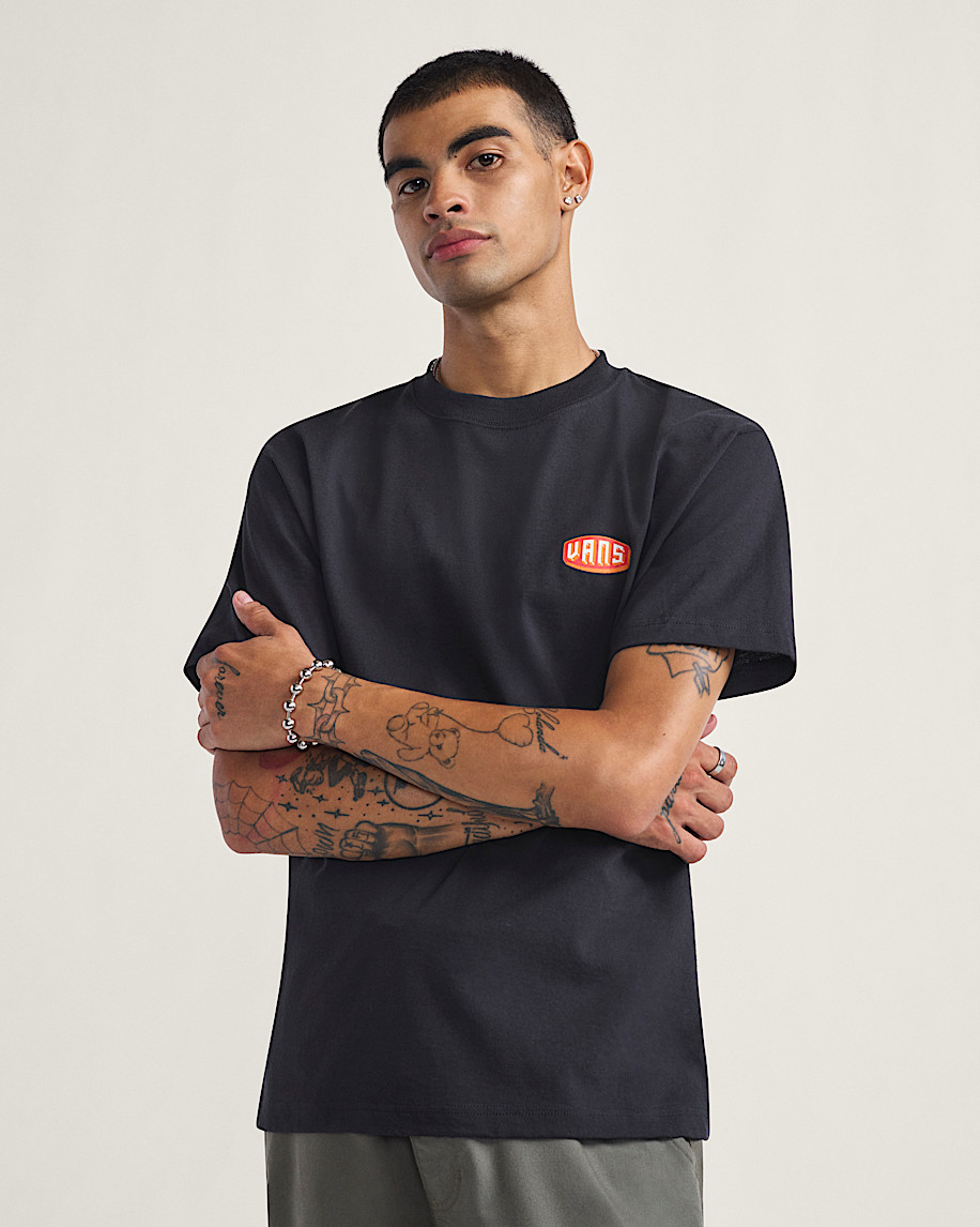 The Raised Up T-Shirt features short sleeves for a casual, everyday style. It's topped with screen printed artwork for a long-lasting design, featuring a stylized Vans logo on the chest.