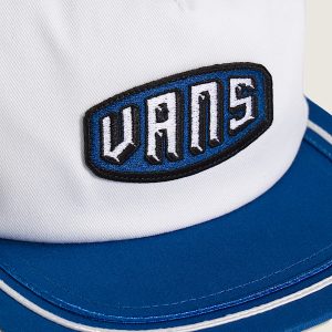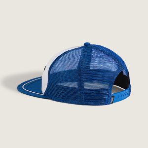 Trucker build with light structureFlat bill delivers wide, forward-facing coverageBreathable mesh back for all-day airflowAdjustable snap for a custom fitPrinted patch at front panelSoutache detail at billVans flag label at back snap closureFront: 100% cottonBack: 100% polyesterLining: 100% polyester