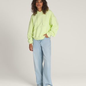 Pullover hoodie with kangaroo pocketEmby pigment wash for worn-in lookFleece fabricationTunneled drawcordRibbed cuffs and hem70% cotton, 30% polyester