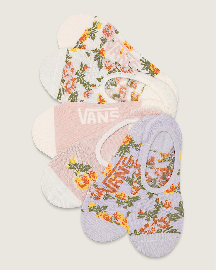 The Romantic Floral Canoodle Sock features a classic low cut, no show silhouette with romantic floral details, highlighted with iconic heritage branding like a jacquard Vans logo.
