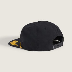 5-panel shape with light structureFlat bill delivers wide, forward-facing coverageScrambled egg embroidery at visorRope detail across front panelDirect embroidery at frontAdjustable snap for a custom fitVans flag label at back snap closureShell: 100% nylonLining: 100% polyester