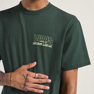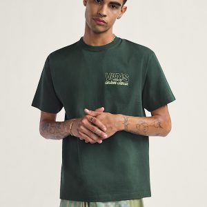 Wear a piece of Vans history in the Shop Front T-Shirt, paying homage to the company's first factory. This classic fit short sleeve crew neck T-shirt features a Screenprinted graphic of a Vans® logo on the front, with a retro storefront ad of the factory's address on the back.