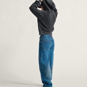 Heavyweight 14oz denim for lasting wearLightly faded wash for a worn-in lookClassic 5-pocket designMid-rise, baggy fit with puddle-length legsFloral and star embroidery for a custom touchCheckerboard suede patch at back waistband“Skate 2 UR own rhythm” embroidered at waist100% cotton