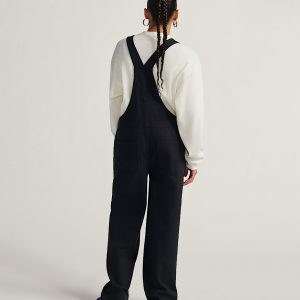 Utility chest pocket for on-the-go storageAdjustable shoulder straps with quick-connect metal claspsSide shank buttons for easy step-in entryFront hand pocket and dual rear pockets100% cotton