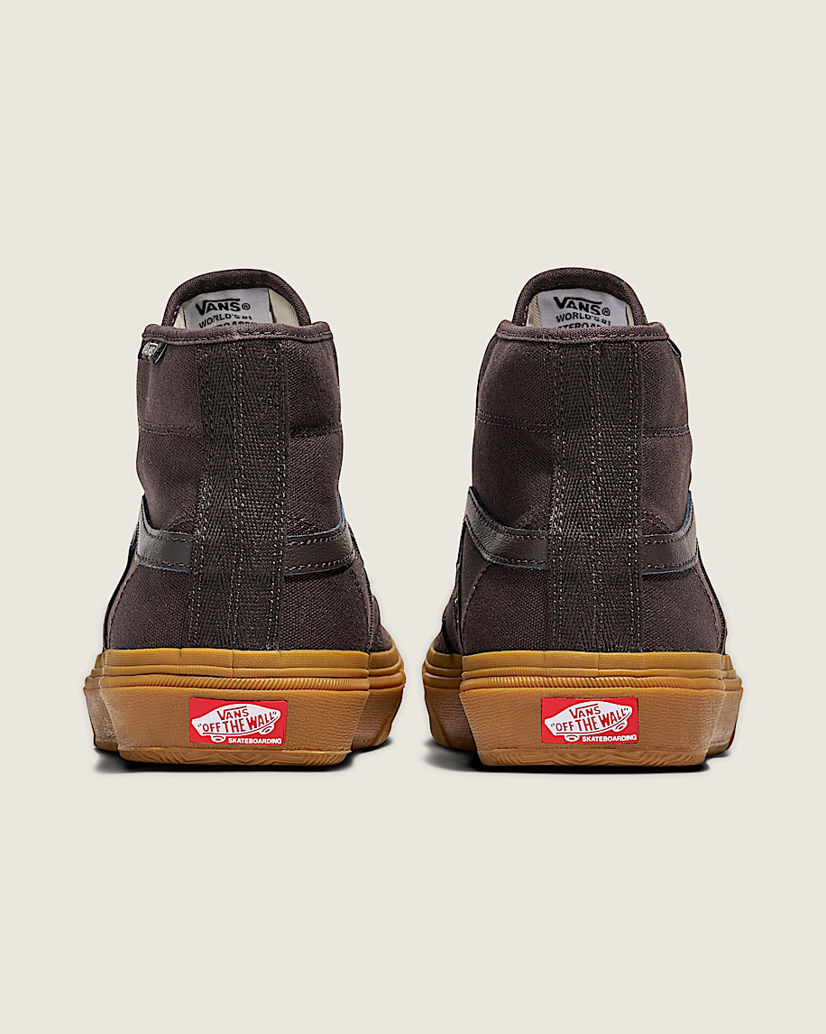 Signature high top skate shoeDesigned for skateboarding with enhanced durability and performance featuresSturdy suede and 10 oz canvas upper with leather accentsPadded collar for enhanced support and comfortLace-up closure for a secure and adjustable fitPopCush™ footbeds offer impact protection and reduce leg fatigue for extended skatingDURACAP™ underlays add reinforcement to high-wear areasWafflecup™ combines cupsole support and durability with vulcanized board feel and flexibilityIconic Sidestripe™ insigniaGilbert Crockett patch