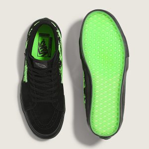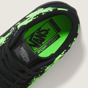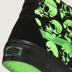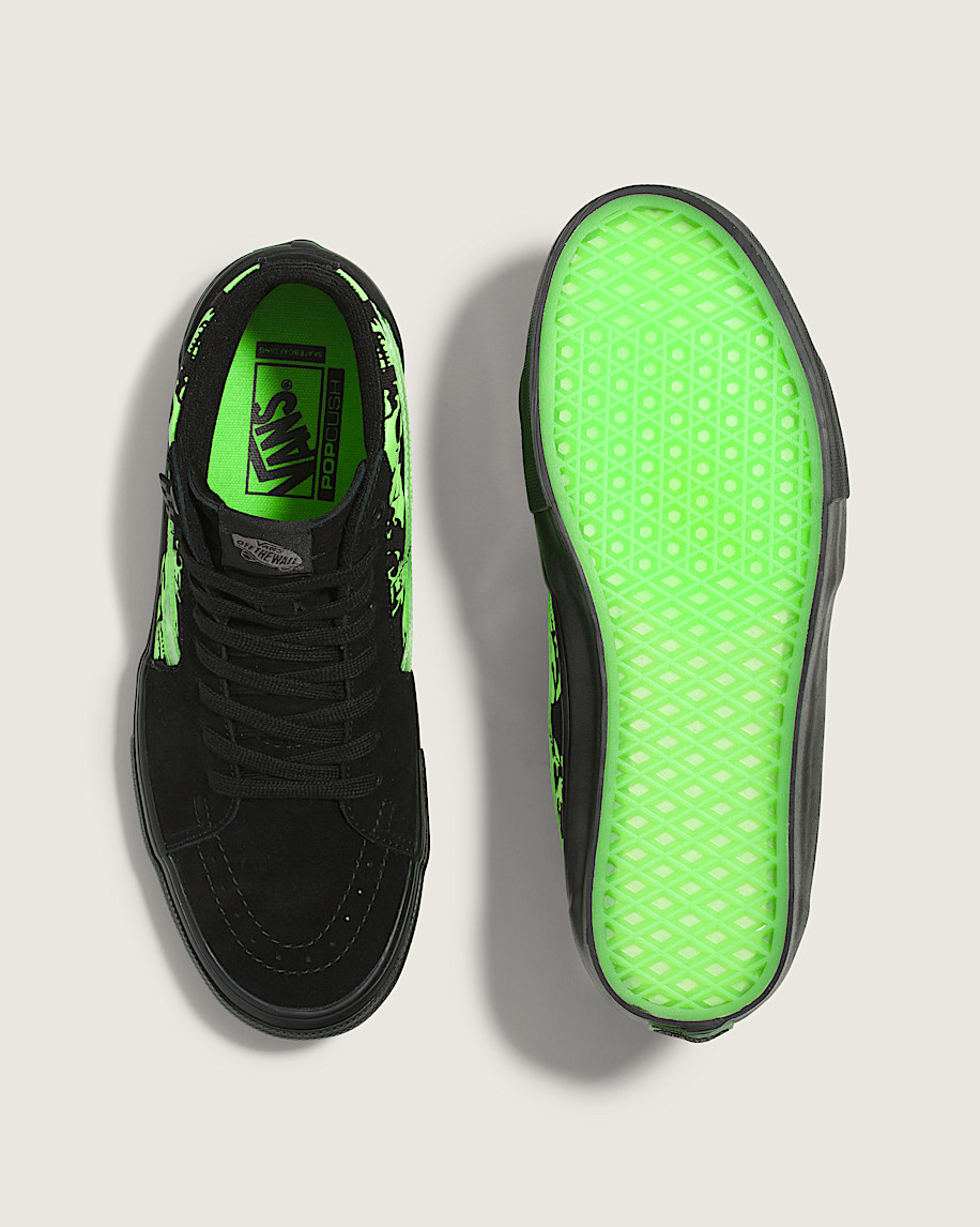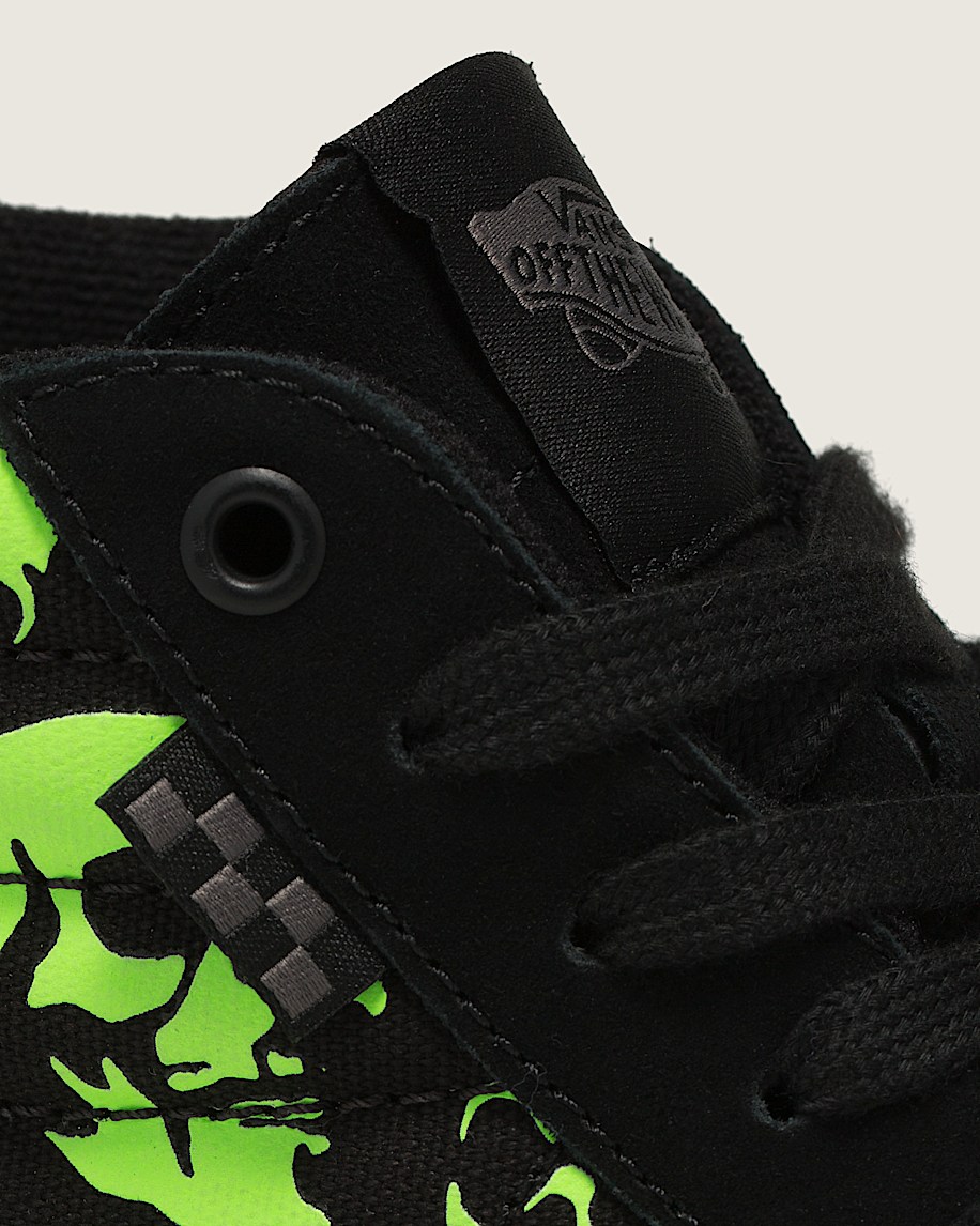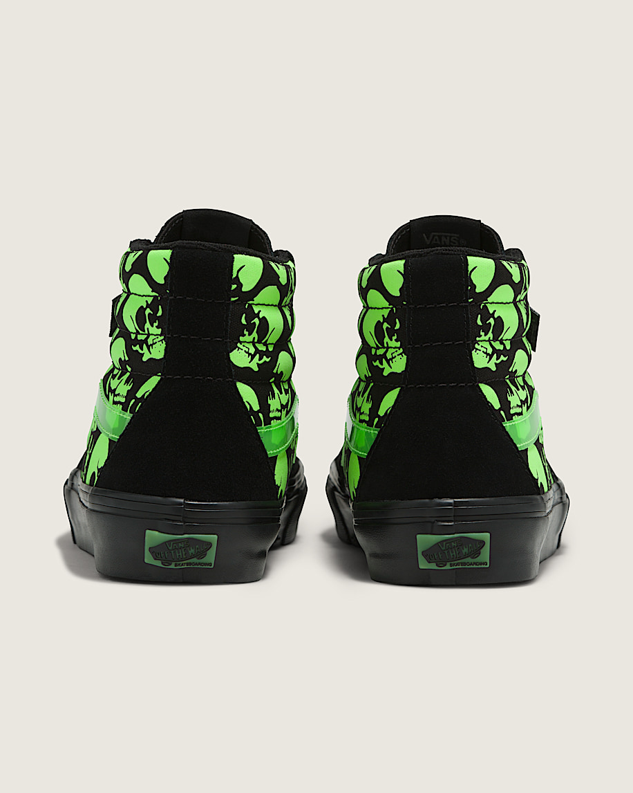 INCREASED DURABILITY – DURACAP reinforced materials, deeper knurl texture on the toe bumpers, and higher sidewall heights provide a heritage look with increased durability and protection.FULLY REDESIGNED UPPERS – Reconstructed with a molded heel counter and internal tongue straps for a locked-in fit and more board control.LEGENDARY GRIP – Our proprietary SickStick gum rubber compound is our stickiest rubber yet.POPCUSH CUSHIONING – Our best cushioning and impact protection. PopCush energy return footbeds protect your feet while helping to lessen leg fatigue for longer skate sessions.ICONIC STYLING – A mix of suede and 10 oz canvas has been used at the upper, maintaining the aesthetic of the original Sk8-Hi, while a neon skeleton print keeps things "Off The Wall."