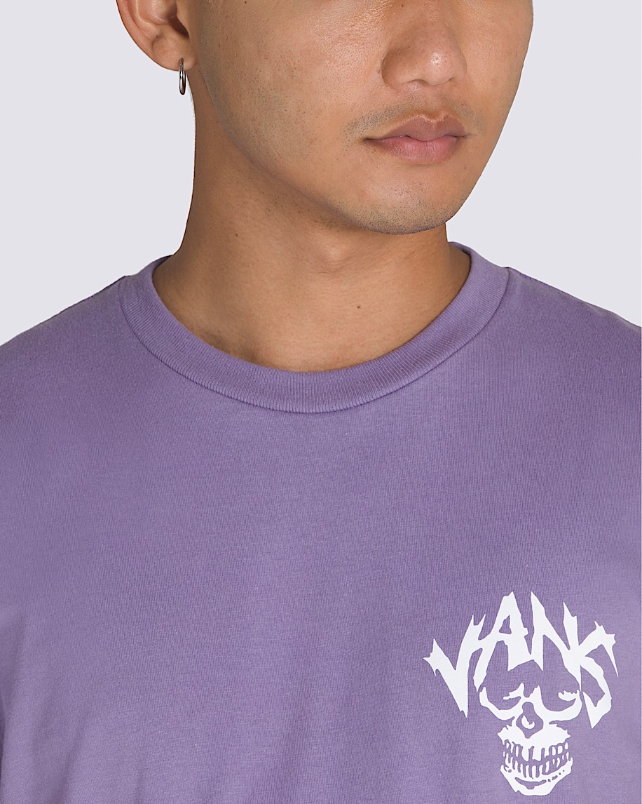 The Skull Reaper Spirit World T-Shirt is a classic fit short sleeve crew neck T-shirt with a screenprinted graphic of the Vans® logo on the left chest, and the grim reaper with a cold one on the back.