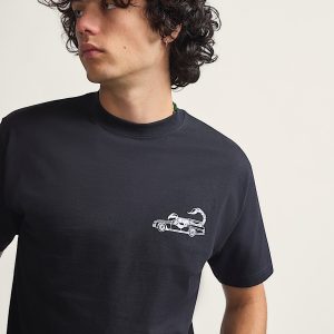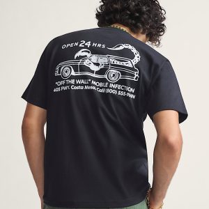 Be a little venomous in the Sting Wagon T-Shirt, blending a classic crewneck style with the comfort and breathability of cotton. Screen print artwork for long-lasting design makes a bold statement with a scorpion commandeering a station wagon atop the location for Vans HQ
