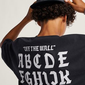 With short sleeves for a casual, everyday style, the Style 001 T-shirt will instantly become a wardrobe top ten. Long-lasting screen printed graphics featuring a stylized Vans logo on the front and an Off the Wall scripted alphabet chart on the back add a streetwear edge to a classic silhouette.