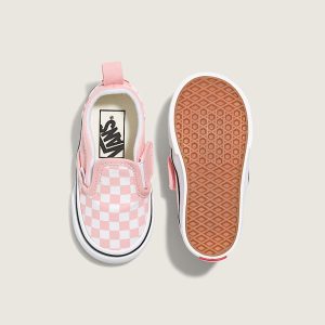Iconic Slip-On shoe made for toddlersSide hook-and-loop closuresHeel pull tabsLow profile textile uppersCheckerboard printSupportive padded collarsElastic side accentsSignature rubber waffle outsoles