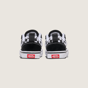 Toddlers 90s low top shoeRecommended for ages 9 months to 4 yearsSturdy suede and canvas uppersOversized tongue and padded collar for extra comfortElastic lace function like slip-ons for easy on and offHeel pulls for ease of entryDurable rubber sidewall with classic foxing stripeReinforced toe bumper for heavy wear and tearSignature waffle outsole pattern for reliable grip since '66Vulcanized sole for superior board feel and flexibilityPuffy 3D Sidestripe™ blends throwback style with a modern edgeCheckerboard branding is unmistakably Vans