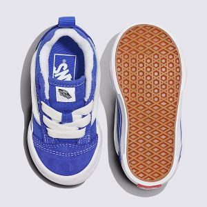 Toddlers 90s low top shoeRecommended for ages 9 months to 4 yearsSturdy suede and canvas uppersOversized tongue and padded collar for extra comfortElastic lace function like slip-ons for easy on and offHeel pulls for ease of entryDurable rubber sidewall with classic foxing stripeReinforced toe bumper for heavy wear and tearSignature waffle outsole pattern for reliable grip since '66Vulcanized sole for superior board feel and flexibilityPuffy 3D Sidestripe™ blends throwback style with a modern edgeCheckerboard branding is unmistakably Vans