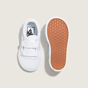The Toddler Old Skool V reimagines our iconic Sidestripe shoe by swapping traditional laces for double hook-and-loop closures. Made with canvas uppers, this low-top style maintains its classic appeal while providing an easy, secure fit that keeps your little one comfortable all day.
