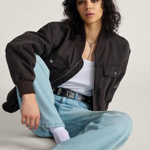 Long sleeve zip front bomber jacketOxford canvas fabricationTrucker pocket detailsPrinted liningReactive pigment dye for saturated, fade-free color100% cotton