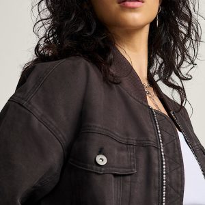 Long sleeve zip front bomber jacketOxford canvas fabricationTrucker pocket detailsPrinted liningReactive pigment dye for saturated, fade-free color100% cotton
