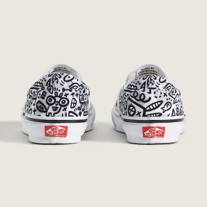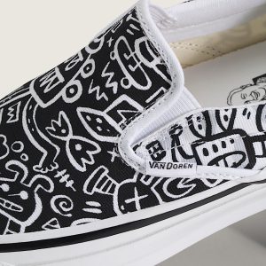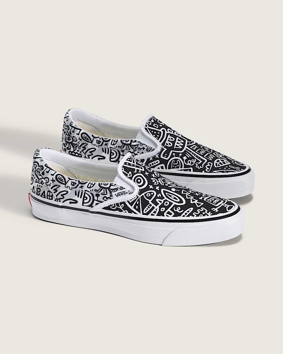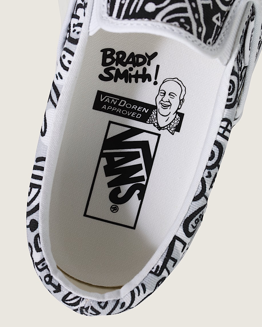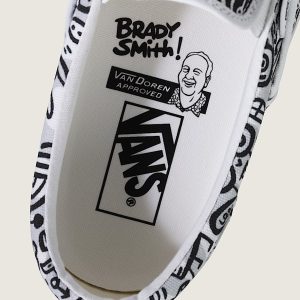 The Premium Classic Slip-On gets a fresh perspective in this Van Doren Approved edition, curated by Steve Van Doren and featuring original artwork by Brady Smith. For years, Brady has been customizing white Slip-Ons and gifting them to friends—so when he and Steve Van Doren met by chance at a book festival, it felt like the right fit. Their shared love of creativity sparked a collaboration that’s been years in the making. This version blends Brady’s signature style with a premium build.