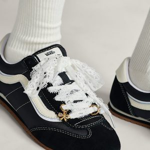 Soft, vintage details come together with a romantic theme in this charm set. A pearl chain adds a touch of glamor and femininity, while white shoelaces soften any shoe. A bow crystal charm and gold heart charm top things off for a warm, shiny finish.