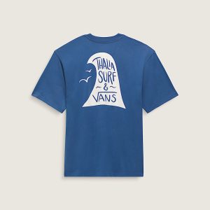 Mens short sleeve teeRibbed neckline for stuctureThalia Surf graphic at chest and backVans woven label on left sleeveLoose fit100% cotton