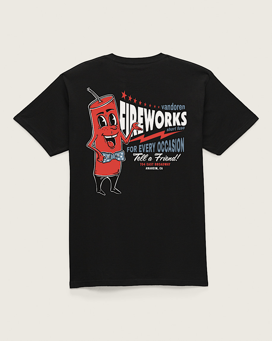 The Works T-Shirt is a short sleeve crewneck tee made from a heavier weight cotton and features firework graphics.